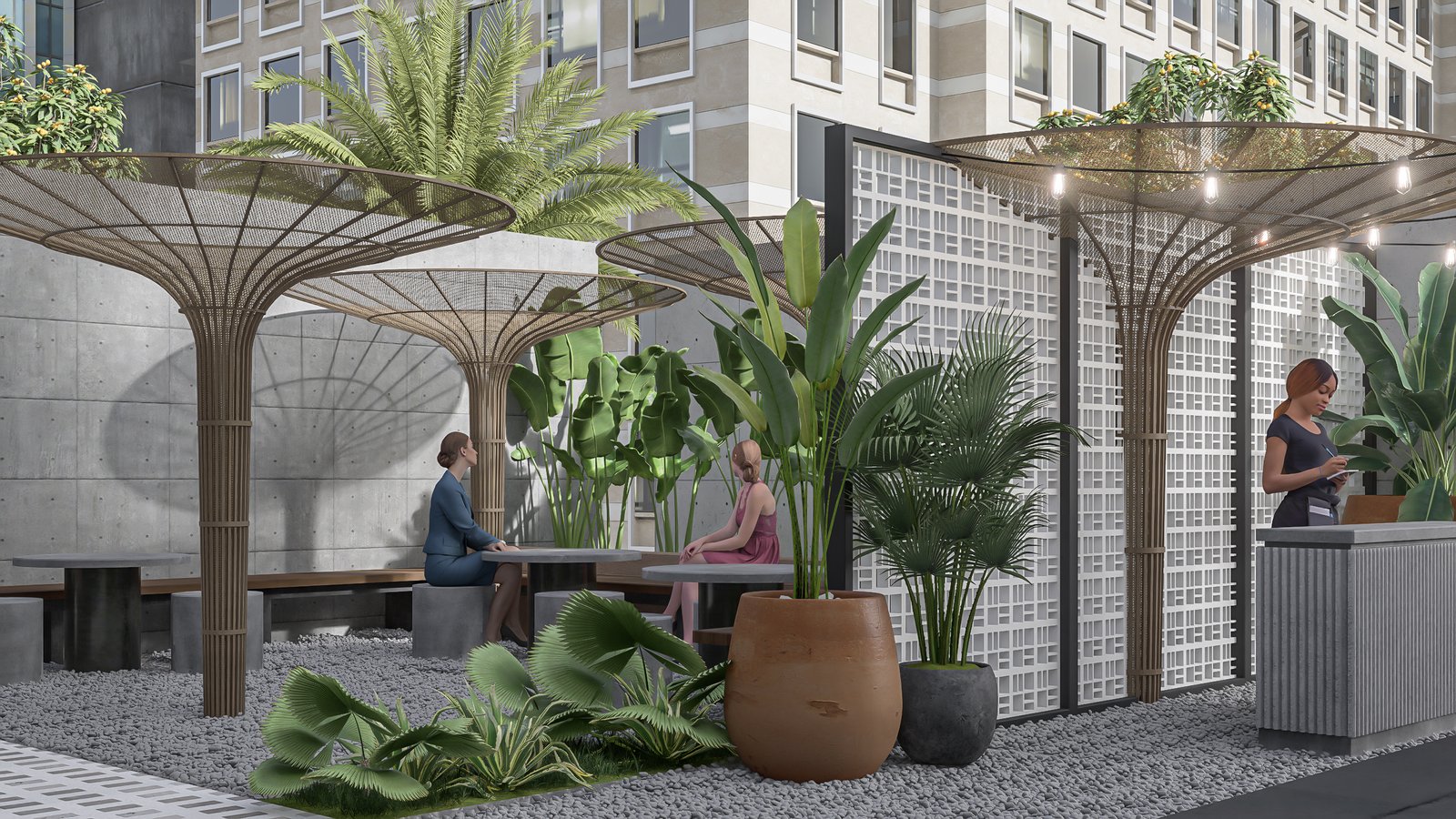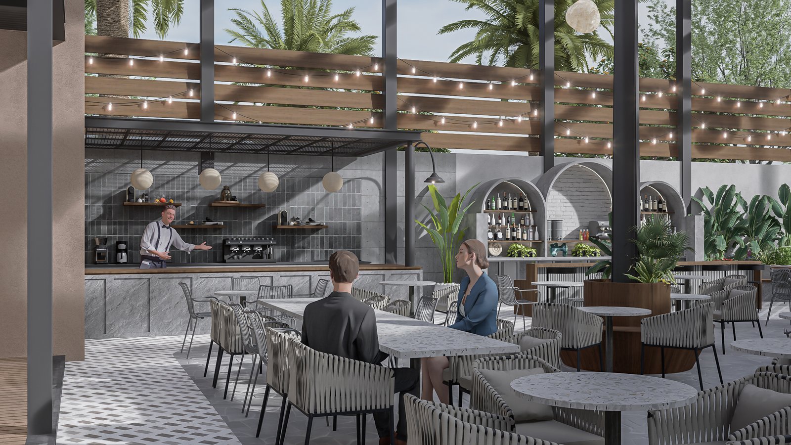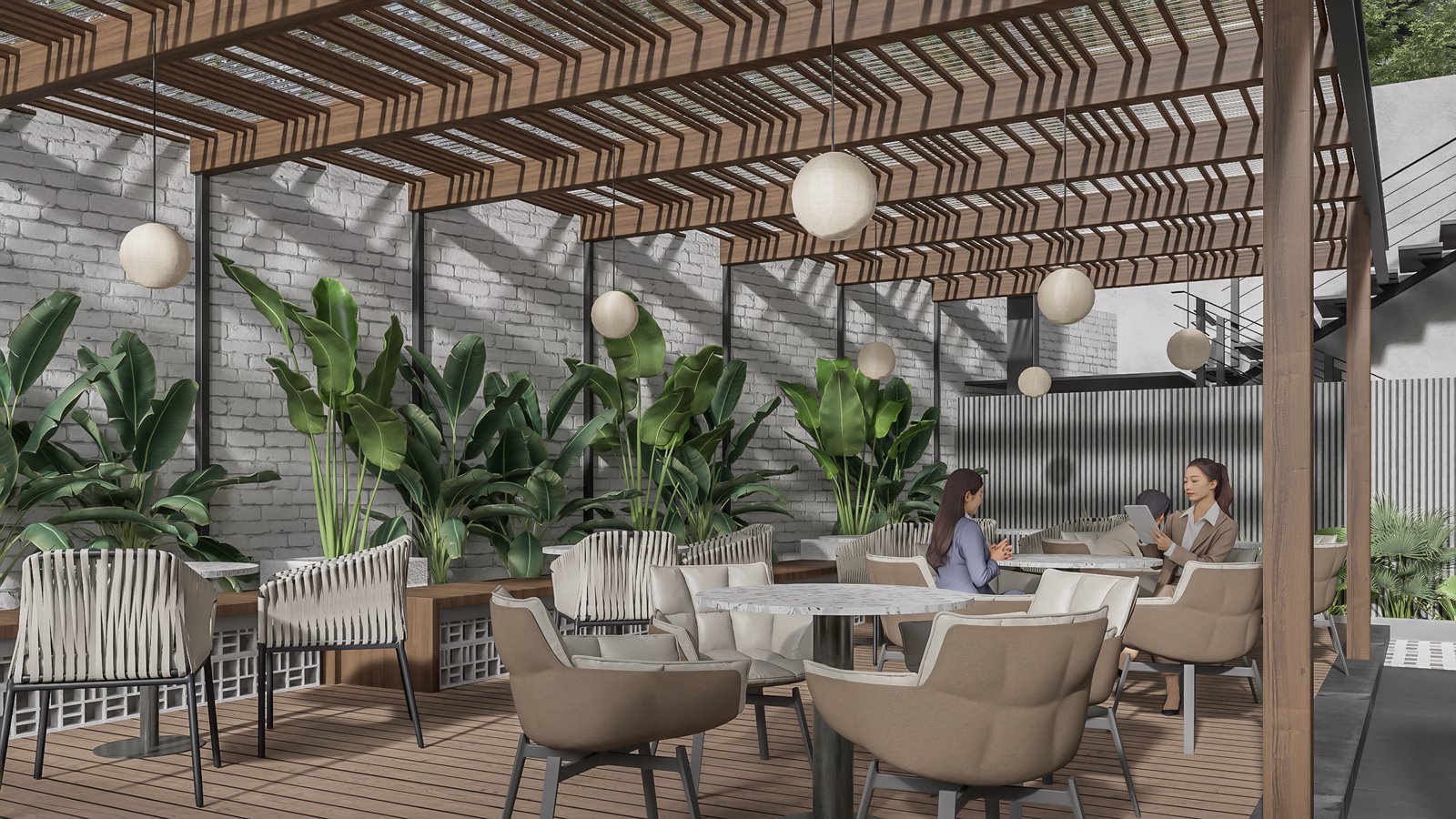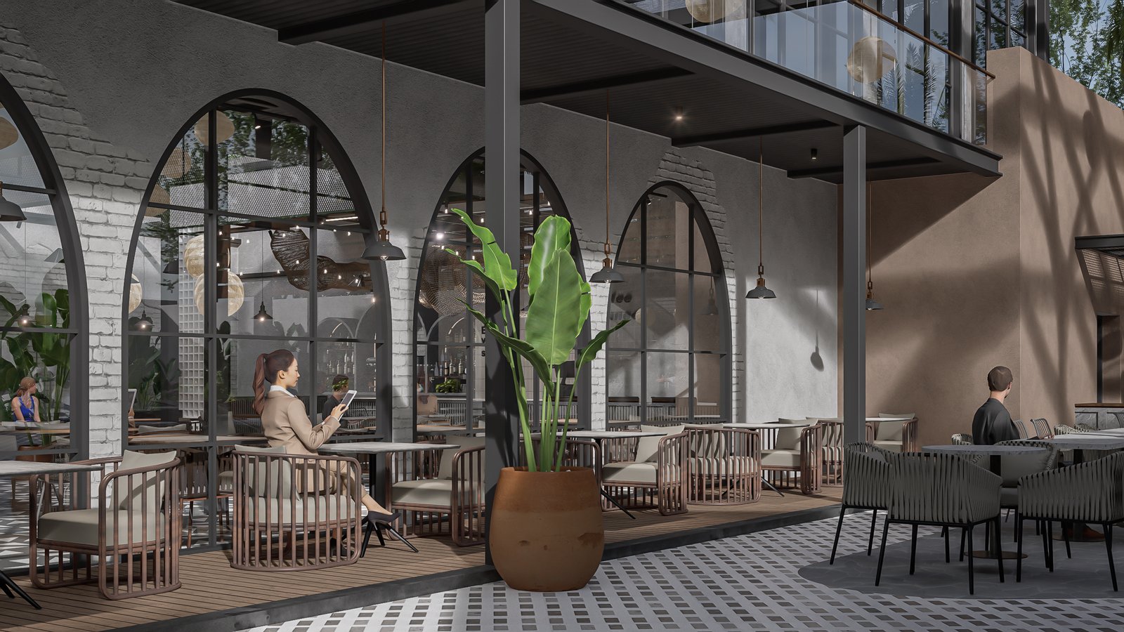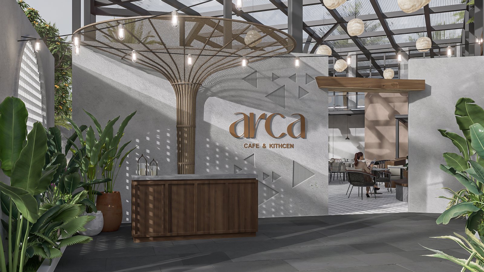 Located within the Hotel Grand Estancia, the design of arca redefines the urban cafe experience. The space is a composition of modern industrial aesthetics and natural elements, creating a dynamic and inviting atmosphere. The design is characterized by a refined use of raw materials, including a layered palette of concrete and exposed brick that is beautifully balanced by sleek black metal frames and warm wood accents. Strategic architectural details, such as large arched windows and screens with geometric patterns, create a captivating interplay of light and shadow. Integration of lush greenery softens the bold, contemporary forms, ensuring the cafe is not only visually striking but also serves as a tranquil retreat.